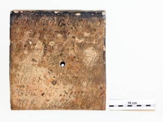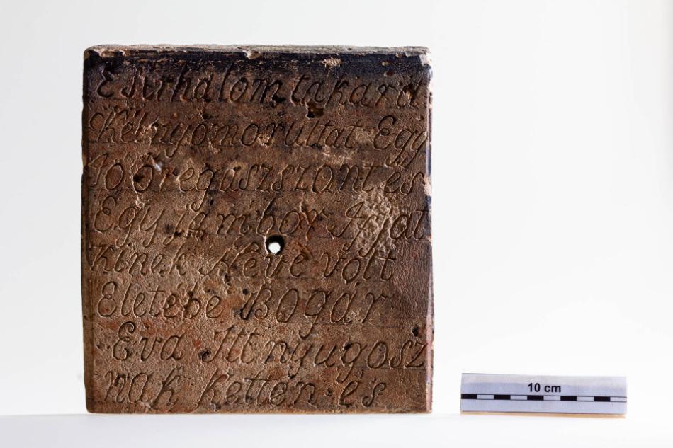 Voltak olyan módon elkészített fejfák is, melyek felirata nem magára a fejfára volt felvésve, hanem egy külön deszkára, vagy mint esetünkben, téglába volt bekarcolva, és azt erősítették fel a fejfára. Az ilyen, fazekassal- vagy téglaégető mesterrel készített felirat praktikusabb volt, az időtállósága miatt.