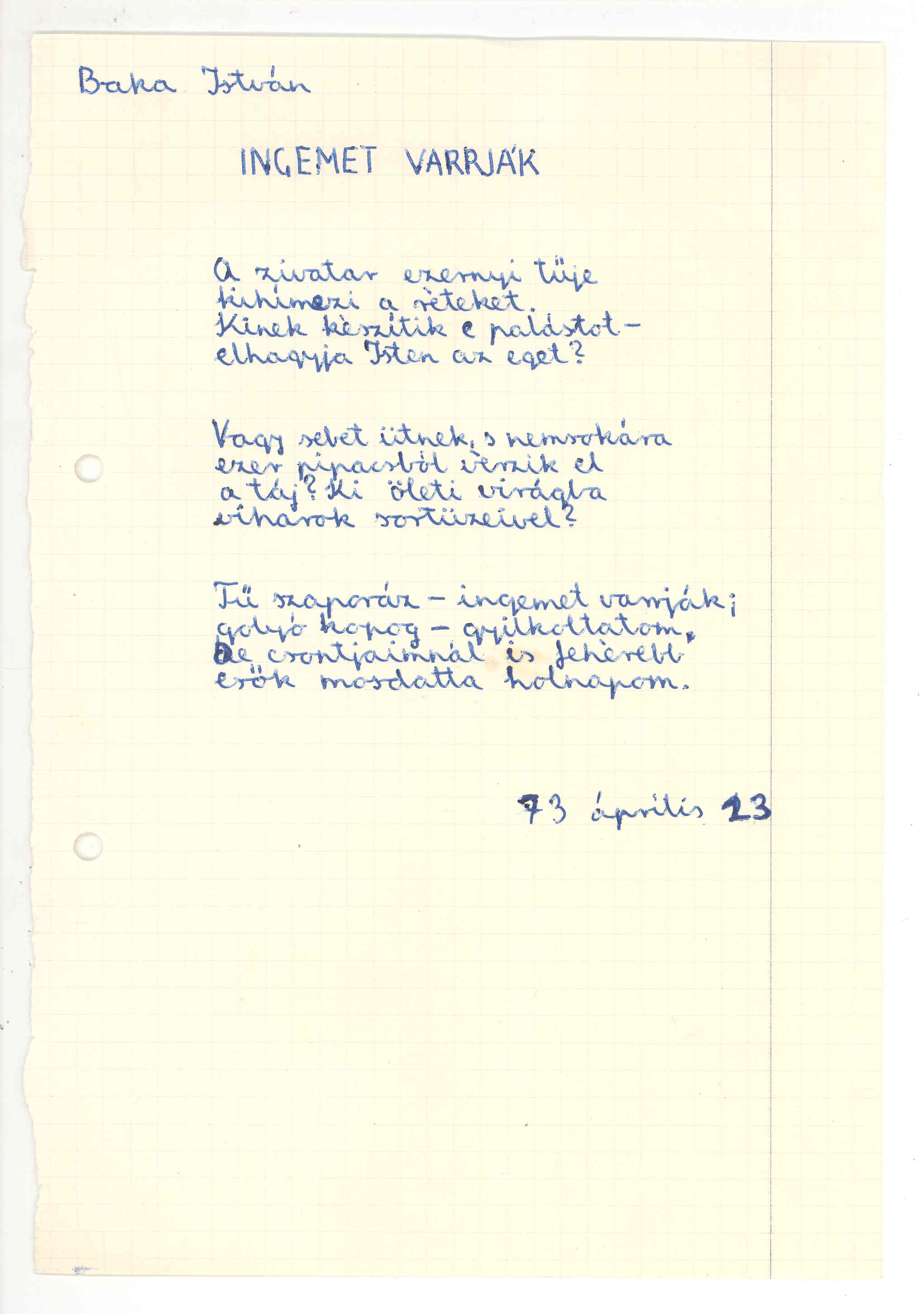 Egy versének kéziratával emlékezünk a költőre.